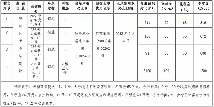 昭陽(yáng)區(qū)青年路南段商鋪拍賣公告