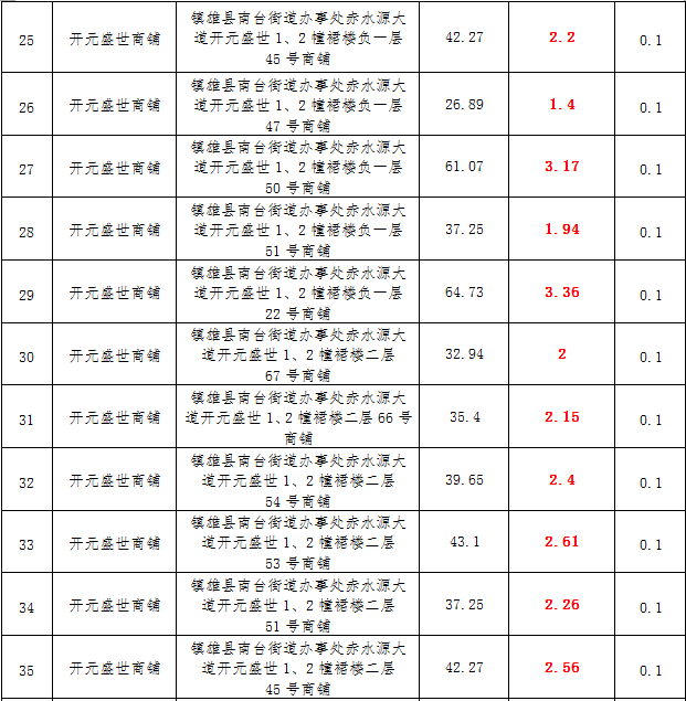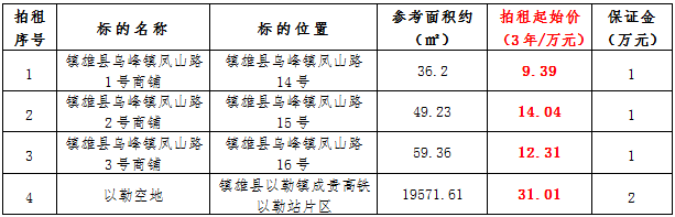 (一)拍租鎮(zhèn)雄發(fā)展集團有限公司國有門面3年期使用權(quán),詳見下表: